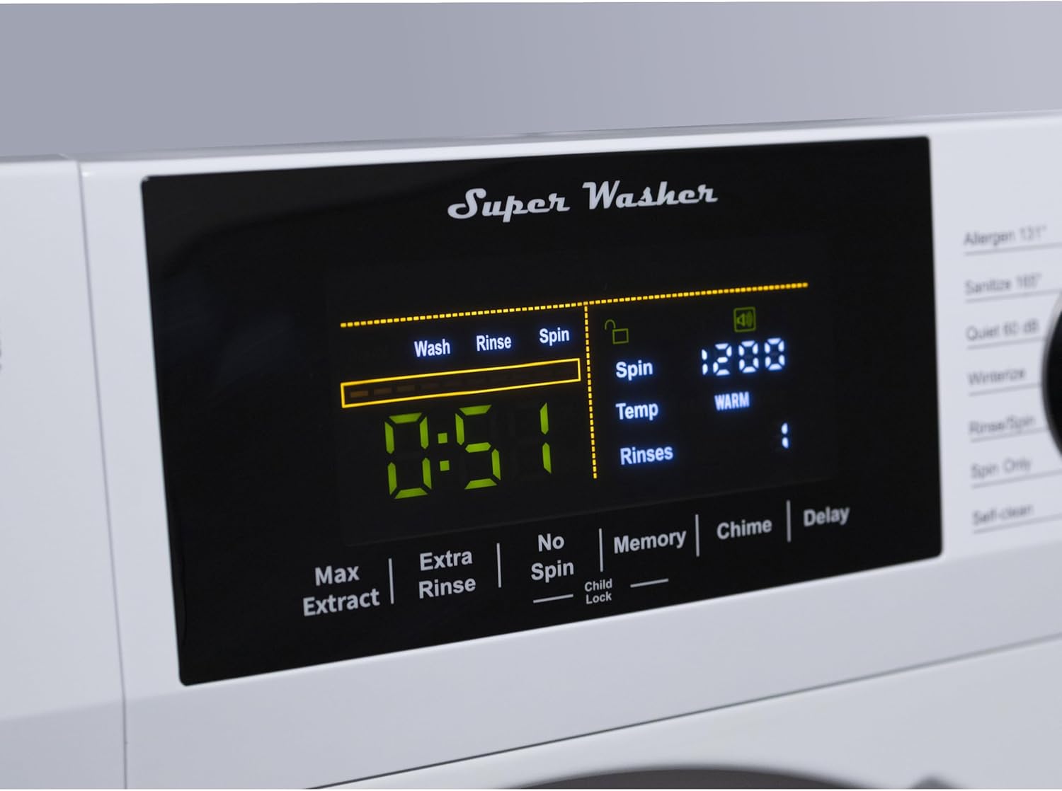 Equator Digital Touch 18 lbs Compact 110V Washer 1400 RPM 4 Memory & 16 Programs